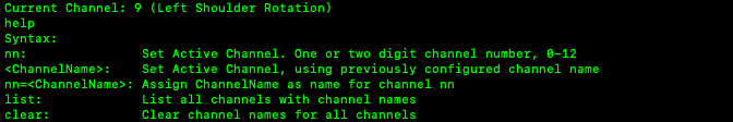 Upon connecting to the Control Interface using a serial terminal application, initial information is presented, including firmware version and currently active channel.